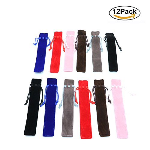HUELE 12PCS Velvet Pen pouch Velvet bag Pen box Pen bag Suede Pen Sleeve(6.9''x1.4'')