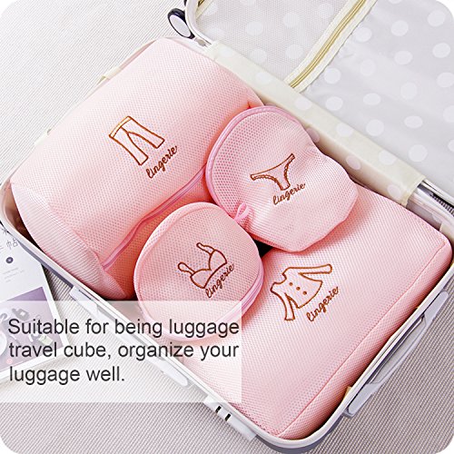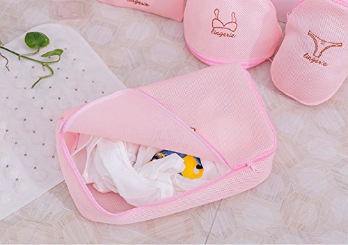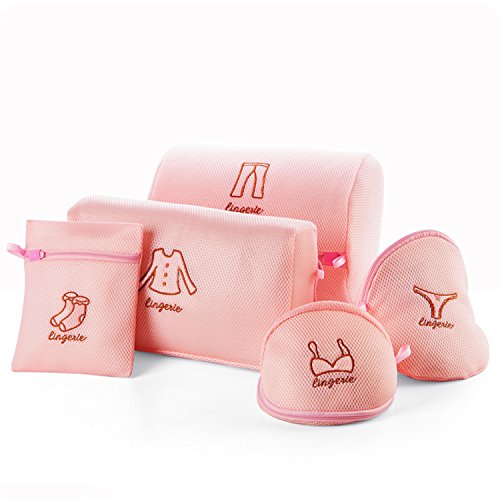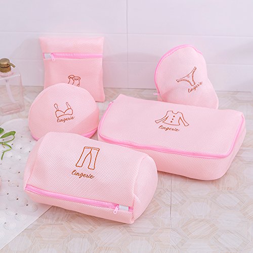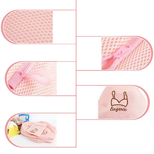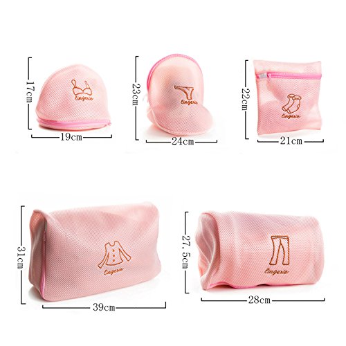 『5-Pack』Mesh Laundry Bag,VDS Durable Laundry Wash Bag Bra Lingerie Bag for Laundry,Blouse, Hosiery, Stocking, Underwear, Bra and Lingerie, Travel Laundry Bag with Zipper(Pink)