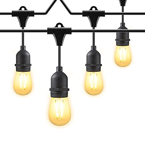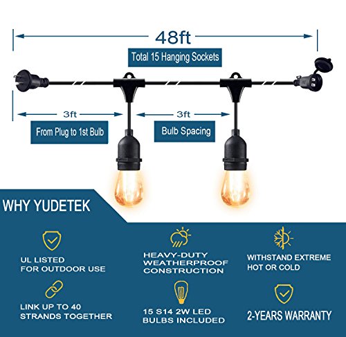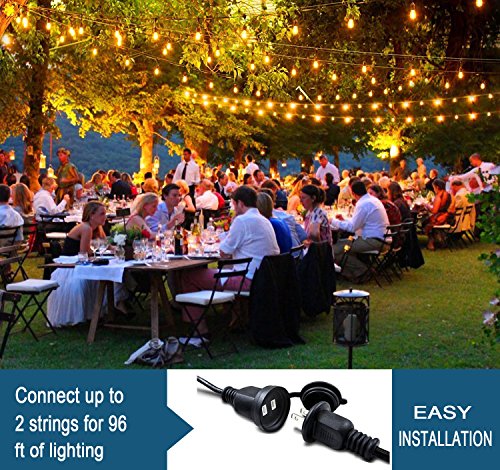 48 ft Commercial Grade Weatherproof Outdoor String Lights, 2W LED Vintage Edison Bulbs with 15 Hanging Sockets for Patio, Party, Wedding, Backyard Lights - UL Listed