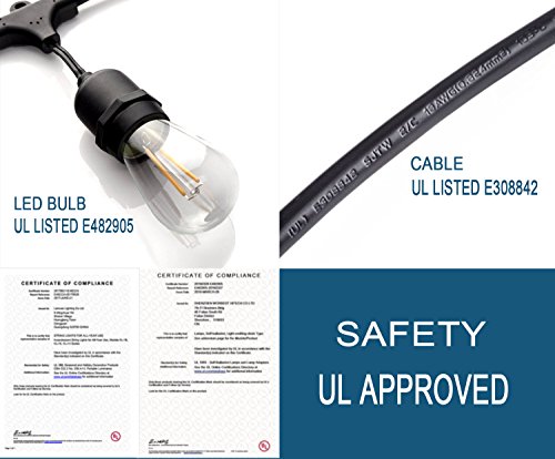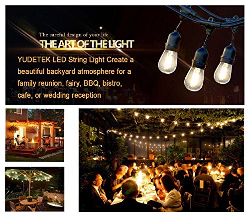- 【ENERGY EFFICIENT LIGHTING】: Our outdoor bulb LED hanging string lights include 15 standard E26 sockets and 15 Edison-style 2 watt LED bulbs, 30 watt in total will saves more money on your bill than if you were using traditional light bulbs; LED bulbs have a longer lifespan than tungsten filament .