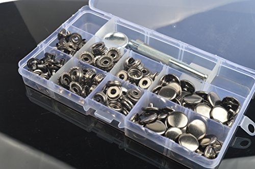 inBox 30 Sets 12.5/15/17mm Gunmetal Black Snap Fasteners Poppers Sewing Buttons Press Studs Kit For Leather Craft Jackets Canava Clothing Bags Repair w/ Die Punch Tool Sets Kit (12.5mm 1 Box)