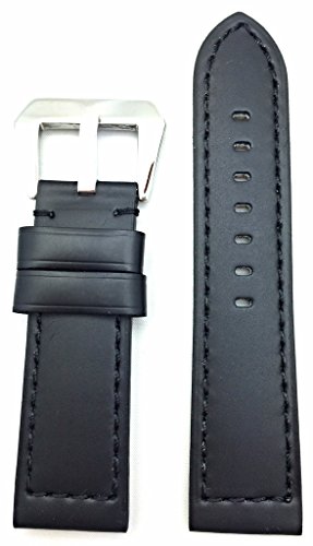 -. Title : 24mm, Black, Panerai Style, Smooth Leather Watch Band