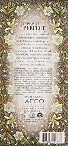 LAFCO’s Present Perfect Hydrating Lotion is artisinally made in Italy. Our formulations are synthetic free and use only the purest natural ingredients and highly nuanced essential oil based fragrances. Prepared from natural and plant-based ingredients, this lotion is the perfect remedy for dry, sensitive skin. It contains a potent blend of cold-pressed Camelina and Macadamia oils to effectively moisturize skin and improve elasticity. Macadamia Oil is a leading natural source of Omega fatty acids and is considered the ideal anti-aging oil; Camelina Oil contains anti-oxidant Vitamin E and alpha-lineoeic and linoleic acids. Strictly free of silicones, parabens, sulfates, petrochemicals and synthetics. Hypo-allergenic.Feature