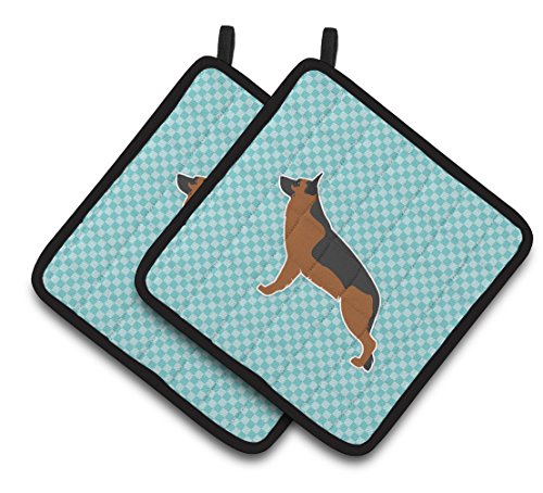 Caroline's Treasures German Shepherd Checkerboard Blue Pair of Pot Holders BB3724PTHD, 7.5HX7.5W, Multicolor