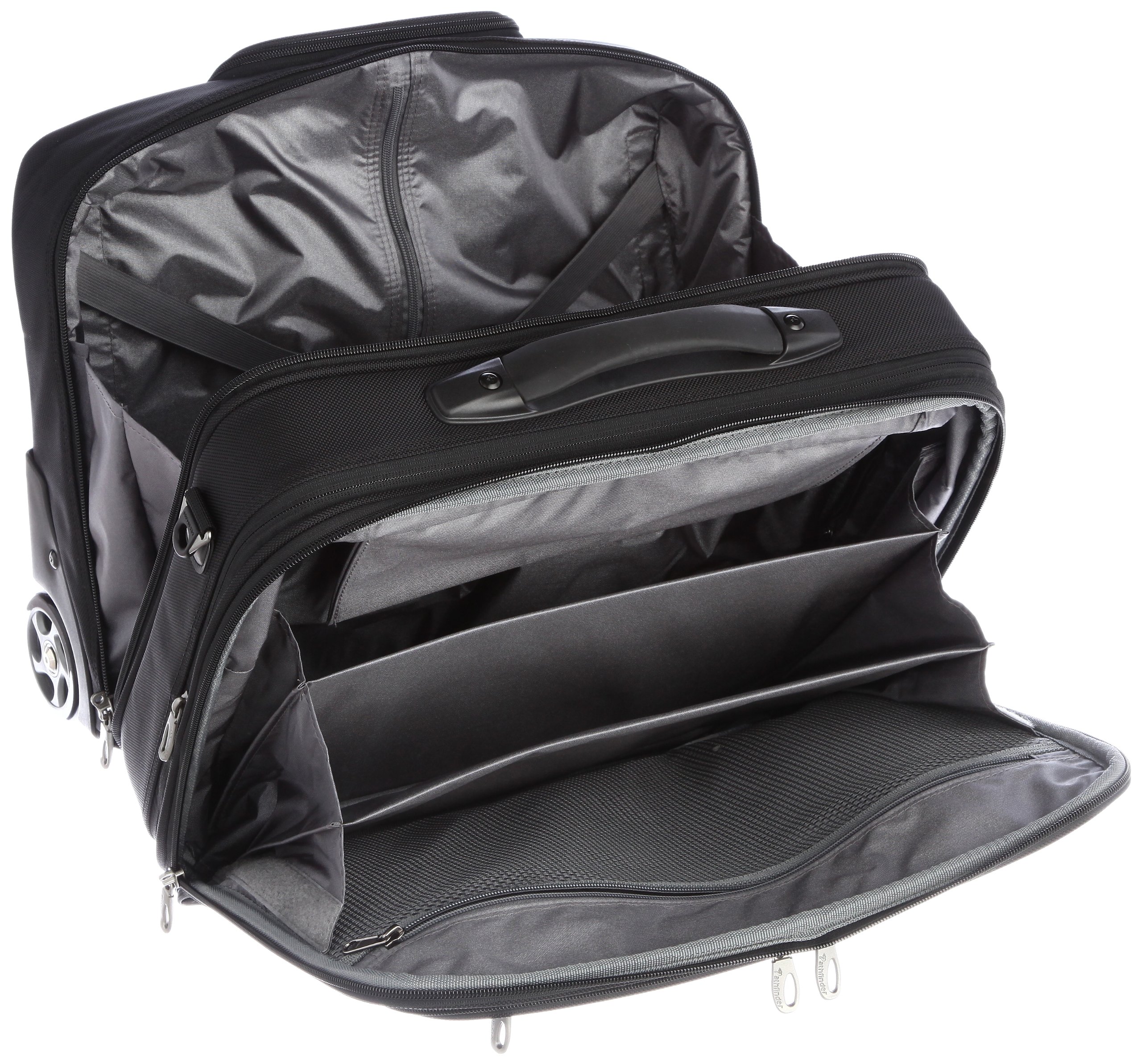 On the back side is also equipped with a standard feature of the Pathfinder such as zipper opening and closing pocket which can also be settable to the trolley.