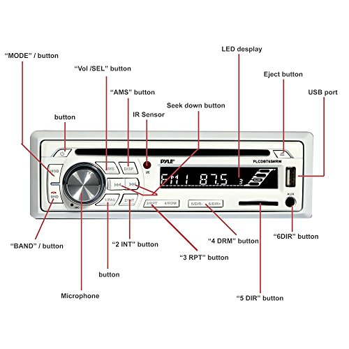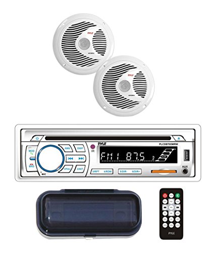 Pyle Bluetooth Marine Stereo Receiver & Waterproof Speaker Kit, Hands-Free Talking, CD Player, MP3/USB/SD Readers, AM/FM Radio, (2) 6.5’’ Speakers (PLCDBT65MRW)