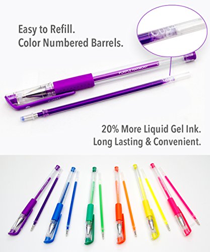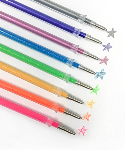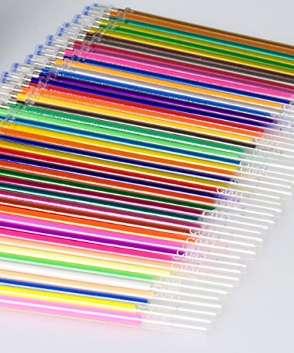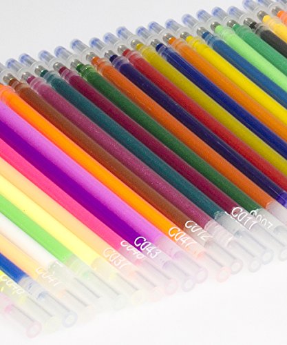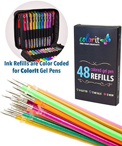48 GEL PEN REFILL SET includes 24 glitter refills, 12 metallic refills, and 12 neon refills. Includes most popular colors - Reds, Pinks, Oranges, Yellows, Greens, Blues, Purples, Browns, Fluorescents, White, Silver and Gold.