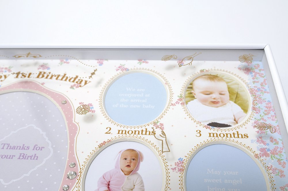 ■ 12 months baby frame, containing photos one by one from birth and completing them.