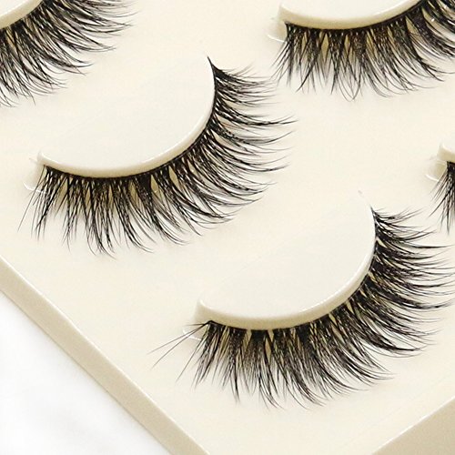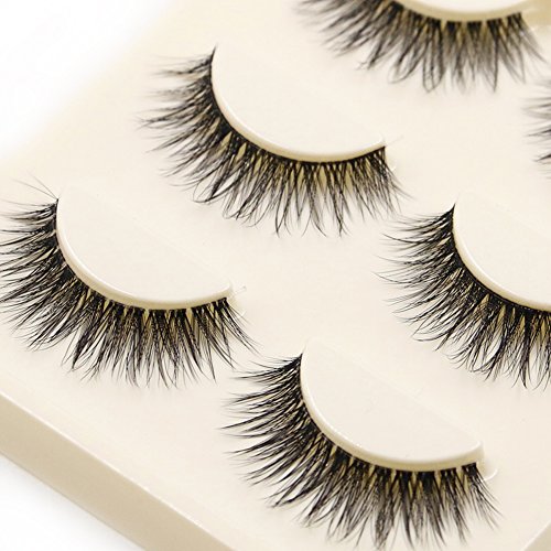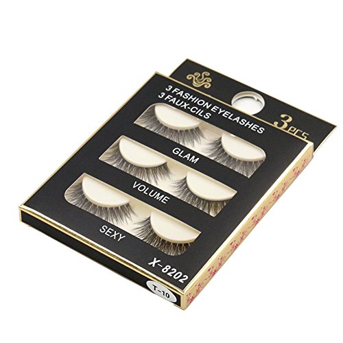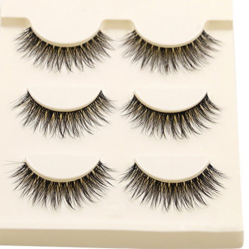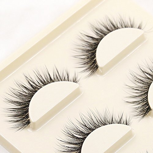 Chinatera 3 Pairs Natural Bushy Cross Handmade False Eyelashes Fiber Transparent Stem