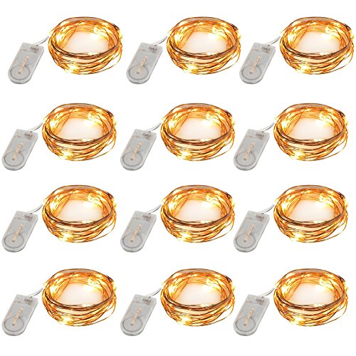 Accmor Led Christmas String Lights, Battery Operated Fairy Lights, Perfect Bedroom, Indoor or Outdoor Halloween Décor Lights, 7.87ft 20 Leds Waterproof Cooper Wire Lights (12 Pack, Warm White)