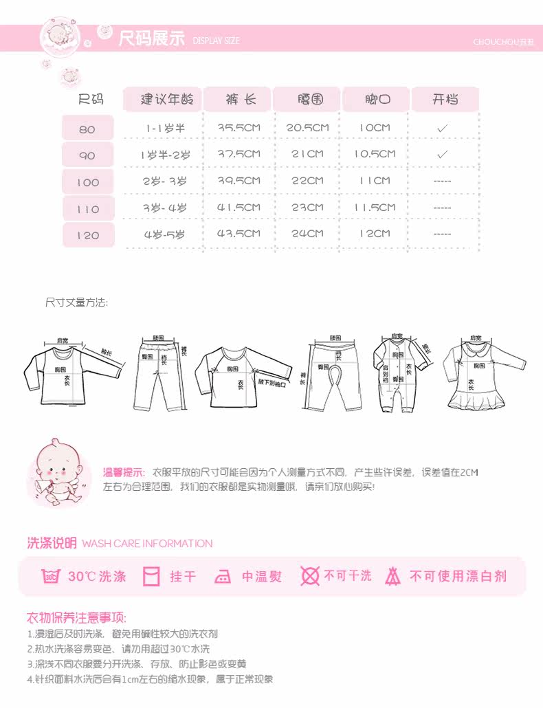 • size: 80cm(1-1岁半) 90cm(1岁半-2岁) 100cm(2-3岁) 110cm(3-4岁) 120cm(4-5岁)