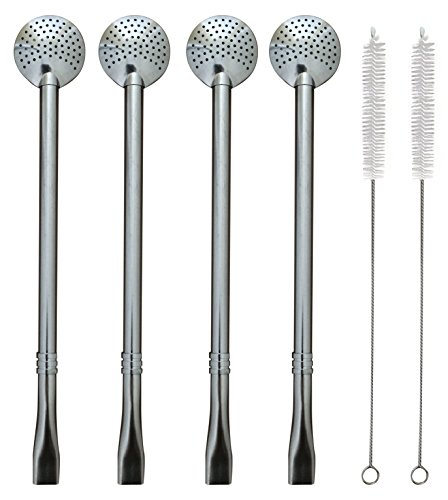 Package includes: (4) Bombilla Metal Straws (2) Cleaning Brush If you are a tea lover or serious about the health benefits of tea drinking, then a Bombilla is a must have. Bombilla's are Ancient devices that are convenient, healthful, and very effective for sipping herbal tea drinks. Herbs float unrestricted in hot water allowing them to release more important nutrients and antioxidants. Mate is a traditional South American infused drink, particularly in?Argentina,?Uruguay,?Paraguay, southern states of?Brazil, south of?Chile, the Bolivian Chaco, and to some extent,?Syria,?Lebanon?and some Brazilian regions. It is prepared from steeping dried leaves of yerba mate in hot water. Mate is served with a metal straw from a shared hollow calabash gourd. The straw is called a bombilla. The gourd is known as a mate or a guampa; while in?Brazil, it has the specific name of cuia. As with other brewed herbs, yerba mate leaves are dried, chopped, and ground into a powdery mixture called yerba. The bombilla acts as both a straw and a sieve. The submerged end is flared, with small holes or slots that allow the brewed liquid in, but block the chunky matter that makes up much of the mixture. Drinking mate with friends from a shared hollow gourd with a metal straw (bombilla) is an extremely common social practice in these countries. 0 |