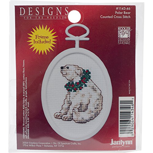 Janlynn 1143-46 18 Count Mini Counted Cross Stitch Kit, 2.75-Inch, Oval, Polar Bear