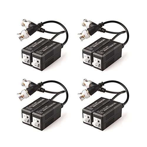 EWETON 4 Pairs Passive Video Balun Transmitter & Transceiver with Cable for 1080P TVI/CVI/TVI/AHD/960H DVR Camera CCTV System, Male BNC to UTP CAT5/5e/6/6e Cable, No Power Required