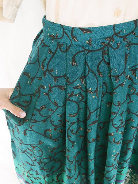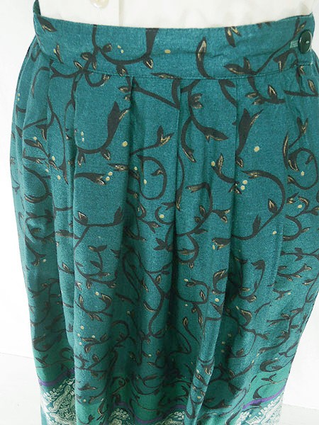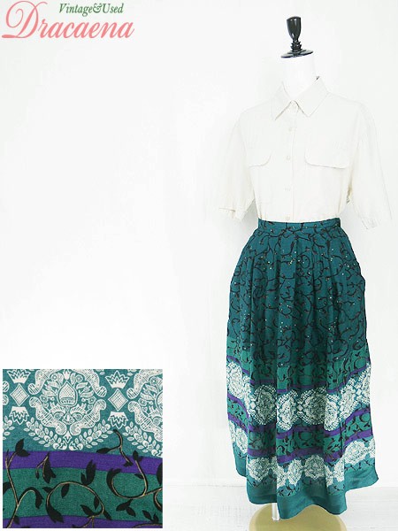 Ladies ブランド カラー緑・紫 メール便不可 コンディション★★★ 素材レーヨン 表記サイズ4 スタッフコメント裏地なし。裾の生地に糸引き跡あり(着用には問題ありません)。 実寸サイズ 着丈 77 cm ウエスト 25 インチ( 64 cm) ※ウエスト・ヒップ以外は平置き採寸