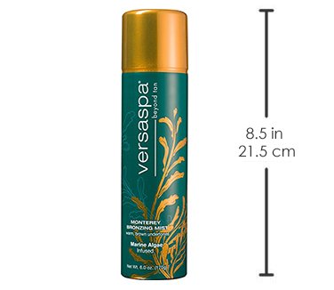 An instant body bronzer designed to perfect your glow without the damaging rays of the sun. Fine, self-tanning micro mist sprays skin evenly sans streaks and stains, while imparting a natural beach-bronzed color that deepens over a few hours and lasts for days. Proprietary Odor-Ban 200 means a virtually odorless self-tanning application, while Eco-Cert DHA and Erythrulose produce highly-pigmented, salon-style self-tanning results at-home, creating an airbrushed bronze. "Fountain of Youth" tanning formulation perfects, protects, and beautifies all at once. A blend of skin-supporting green and brown marine algae improve firmness, encourage cellular regeneration, and restructure lipid barrier. This sunless tanning spray also contains glycerin and sorbitol to soften skin for long-lasting bronzing benefits. Hydrates, heals, oxygenates, and detoxifies skin for unique bronzing plus anti-aging benefits. Paraben -, cruelty -, gluten -free formula won't irritate or clog pores.Feature