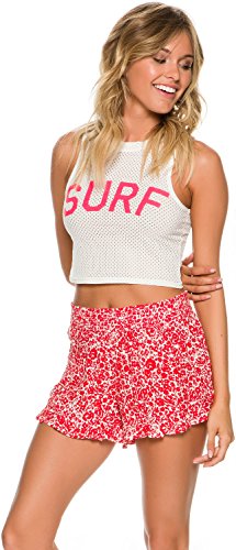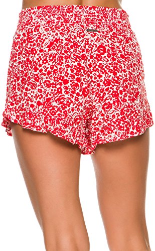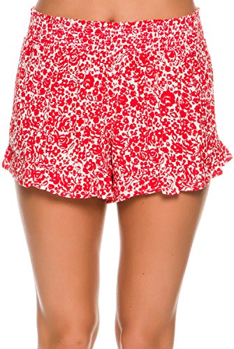 Product DescriptionWoven allover printed, elastic smocked waist shorts with ruffle hem. 3 inch inseam.0
