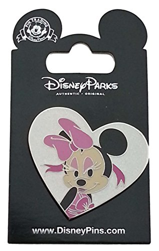 - Pin depicts a stylized Minnie Mouse in a white glitter heart
