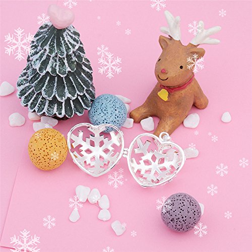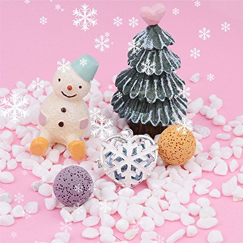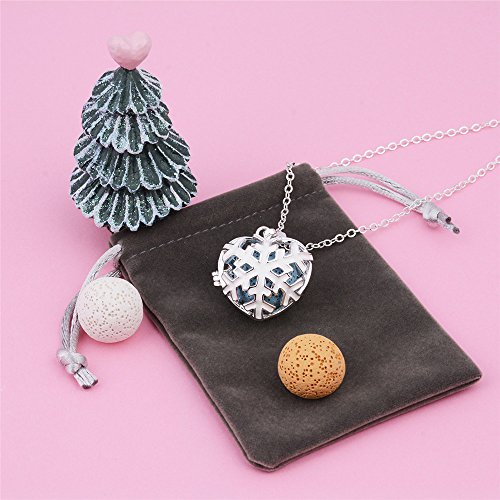 INFUSEU Lava Rock Diffuser Necklace Aromatherapy Essential Oil Pendant Snowflake Locket + 5PCS Stone Beads + 30" Chain Silver Plated Women...