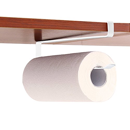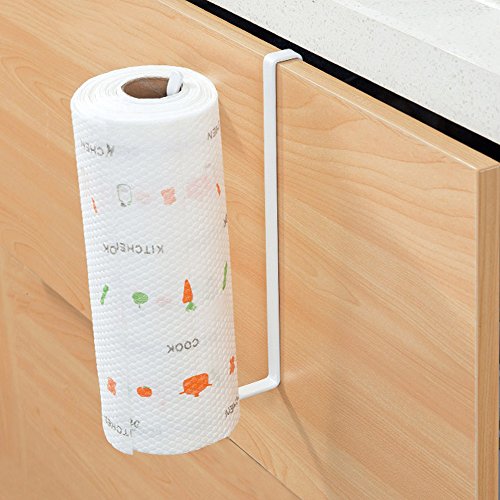 Sturdy stainless steel over the door paper towel holder. Easily slides onto shelf or mounts under cabinets without any tools or installation