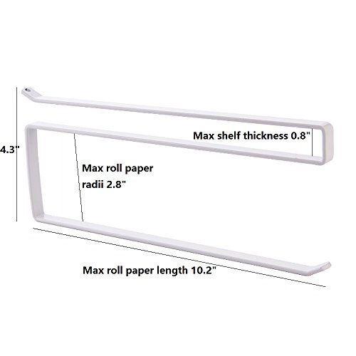 Dimensions: 10.2*4.3*0.5 inches. Requires a cabinets 0.8" thick or less. Maximum roll paper length 10.2", radii 2.8". Make sure you take measurements before your purchase