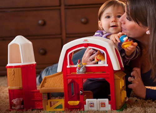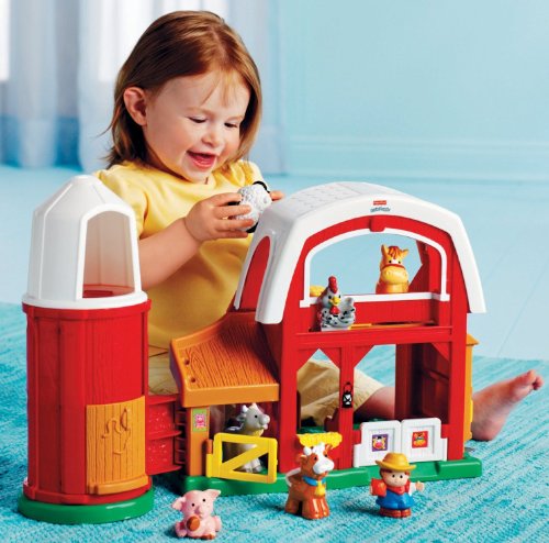 The Little People Animal Sounds Farm is portable and easy to clean right up! Little People and farm animals are sized just right and feature a great chunky design perfect for little hands to grab! When the play is done, the design of the Silo conveniently stores all play pieces inside.