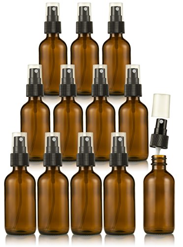 12 Pack Amber Boston Round Glass Fine Misting Spray Bottles - For Essential Oils, Aromatherapy, Perfumes, Travel - 2 oz