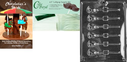 Cybrtrayd 45StK50GRBk-F028 Tea Rose Lolly Chocolate Candy Mold with Chocolatier's Bundle, Includes 50 Lollipop Sticks, 50 Cello Bags, 50 Green Twist Ties and Chocolatier's Guide