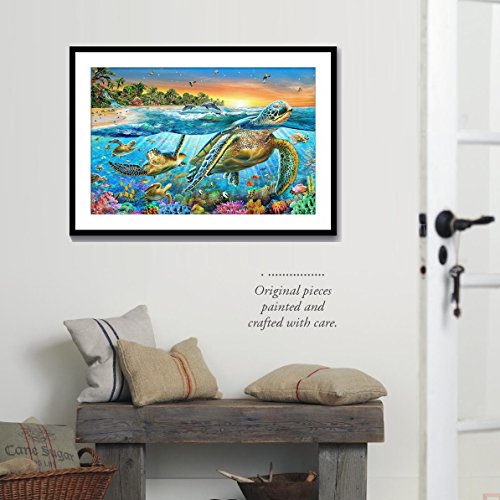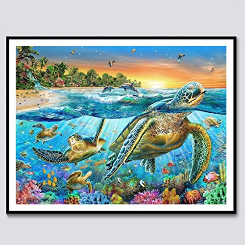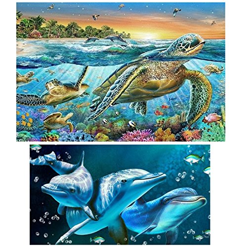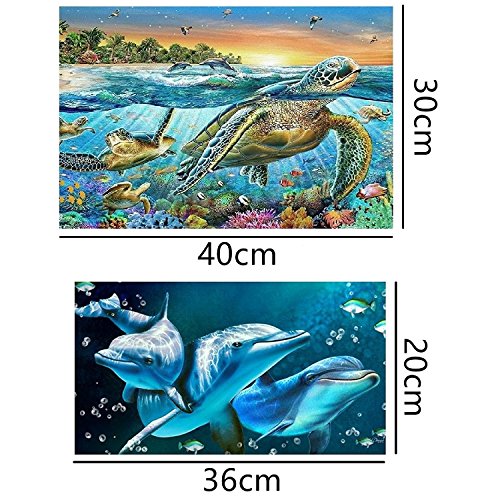 Topus 2 PCS 5D DIY Diamond Painting Set Decorating Wall Stickers For Home Wall Decor, Sea Turtle (30X40CM/12X16inch) and Dolphin (36X20CM/14X8inch)