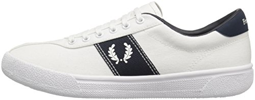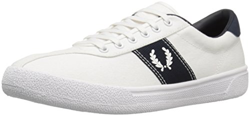 Studio : Fred Perry Publisher : Fred Perry Binding : Shoes Product Description Based on original ‘80s styles from the fred perry archive, this is our b1 tennis shoe with sports authentic details. looking back to the bold, retro sportswear of the era, the shoe is made with the same colour palette as our track jackets. made with a cotton canvas upper and rubber sole, sports authentic detailing is added with contrast-colour grosgrain tape and b50 laurel wreath badge at the side. signed off with fred perry branding on the back and our sports authentic label on the sock. 0