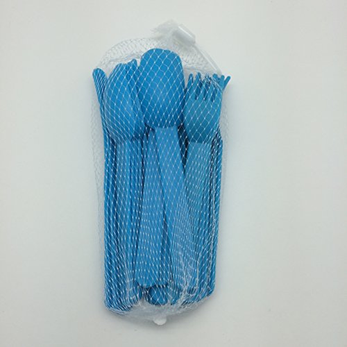 24pc Plastic Fork & Spoon Cutlery Set (Blue)
