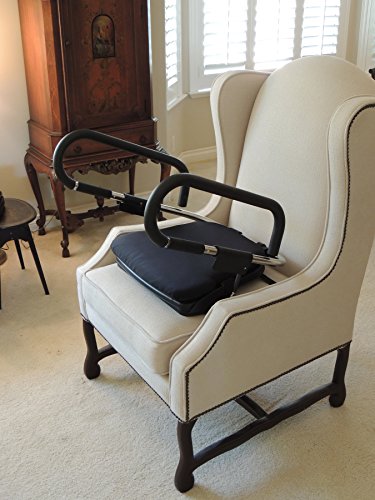 -. Feature : Uses an individual's upper body to assist in rising from/descending into a seated position / No strings, sP.R.Ings, pneumatics, electricity or hydraulics, works on most chairs / For anyone who is stable when standing, but needs help getting up from a seat / Lifts 100% of the user's weight, easy to adjust, includes handle attachments for added leverage / Safety straps double as a shoulder-carry strap, portable and compact