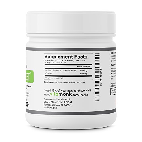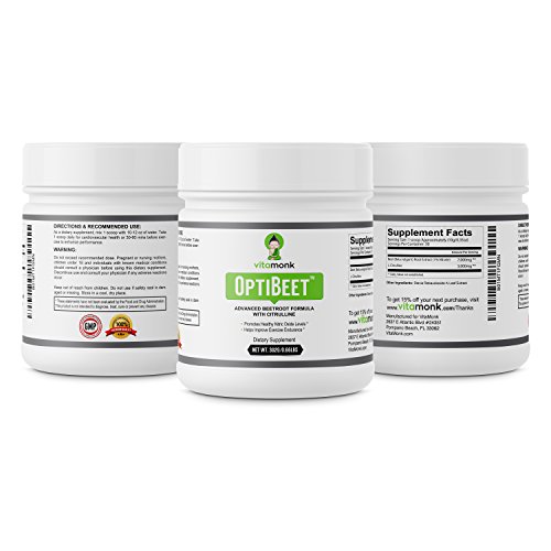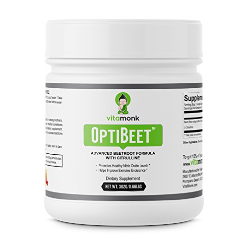-. Feature : NATURALLY ENHANCE ATHLETIC PERFORMANCE & ENDURANCE BY SUPPORTING BLOOD FLOW - VitaMonk's OptiBeetTM contains a potent blend of beet root powder extract and L-Citrulline . Beetroot is known for it's high nitrate content. When ingested nitric oxide enters your body, it causes your blood vessels to dilate. This beet root induced dilation promotes healthy blood flow which can help transport more blood and oxygen to your muscles, supporting athletic performance. / BOOST ENERGY NATURALLY! PRE WORKOUT WITHOUT THE JITTERS - Our beetroot supplement also contains L-Citrulline, an amino acid that converts to L-arginine in the kidneys and is often used as a sports performance and cardiovascular health supplement. L-Citrulline supplementation has been shown to support reduced fatigue and improved endurance for both aerobic and anaerobic prolonged exercise in healthy individuals. / SPECIALLY FORMULATED BY LICENSED PHYSICIANS - This specially formulated nitric oxide pre workout supplement was designed by licensed physicians to give you the most effective natural nitric oxide powder supplement on the market. It includes among the highest content per serving of L-Citrulline with nitric oxide booster and beet root powder. Get the health benefits of beets in one quick supplement without all the hassle. Tip: For best taste, add honey. / SAFE & EFFECTIVE - At VitaMonk we source the highest quality ingredients and go to great lengths to make sure our supplements are 100% safe. Our nitric oxide supplement OptiBeetTM is no different. We follow strict FDA guidelines and GMP compliance standards. Made in the USA! / 100% MONEY BACK GUARANTEE - Purchase risk-free. We guarantee results or you will get your money back. We're confident that you will love our nitric oxide booster powder. CLICK ADD TO CART button and start getting an effective source of natural nitrates to support enhanced workouts today!