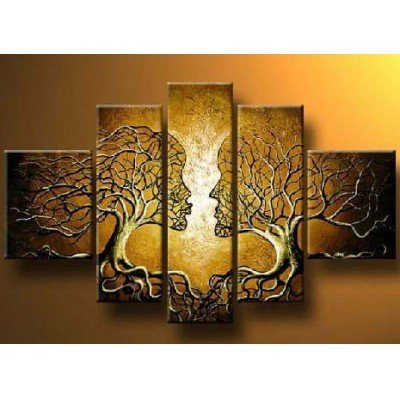 - Title : TJie Art Hand Painted Mordern Oil Paintings Wall Decor Yellow Kiss Tree Human Body Abstract Clouds Home Landscape Oil Paintings Splice 5-piece/set on Canvas