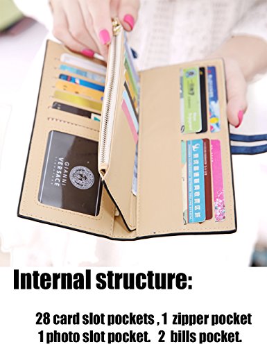 -. Feature : Looking For An Wallet that holds tons of cards? Try This Wallet! EXTRA STORAGE CAPACITY. 28 card slot pockets, 1 zipper pocket and 1 photo slot pocket.2 bills pocket. / EXQUISITE DESIGN.Tassel, chain, umbrella and letter embellishment. There are 4 colors to select: Rose,Royal Blue,Black,Burgundy. / DURABLE MATERIAL. Skillfully crafted, stitched and sewn with delicate lining to ensure finest workmanship,detail and durability / DIMENSION: ( L*W*H )19.5 cm x 8.5 cm x 1.5 cm (7.67inch x 3.34inch x 0.59inch) / MULTIPLE VERSATILE USES.Put it into your handbag, can hold bills, change, credit cards, photo, ID card, business card, etc It is very elegant and suitable for many occasion like party, shopping, restaurant etc.