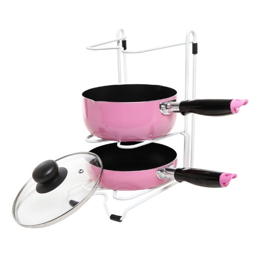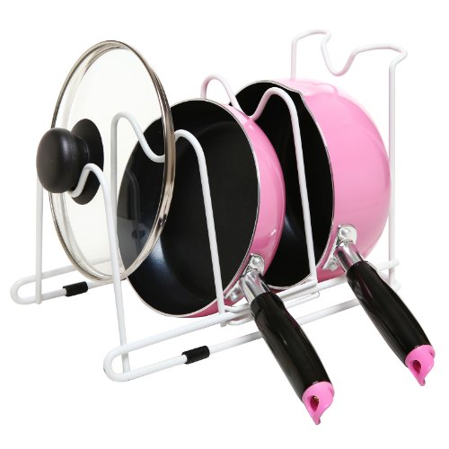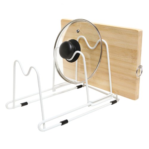 - Title : White Metal Adjustable Kitchen Pots Holder Pans / Lids Storage & Drying Rack Organizer - MyGift