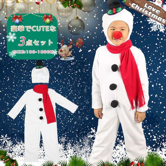 クリスマス コスプレ 雪だるま 子供 ジュニア スノーマン 白 かわいい コスチューム 衣装 キッズ 男の子 女の子 子ども 仮装 変装 服 セットアップ パーティーグッズ イベント用品 ユニセックス xmas Christmas cos