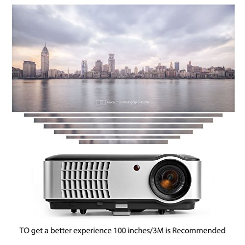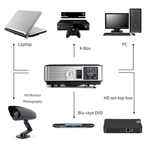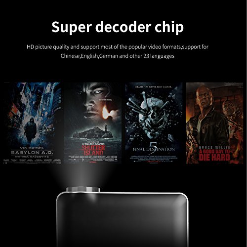 Resolution:1,280*800, support 720P/1080P;Projection screen size: 50-200 inches, Image Flip: 360 degree flip;Color: 16.7K.Share your friends and family with movies, video games, football games, play cartoons for the kids