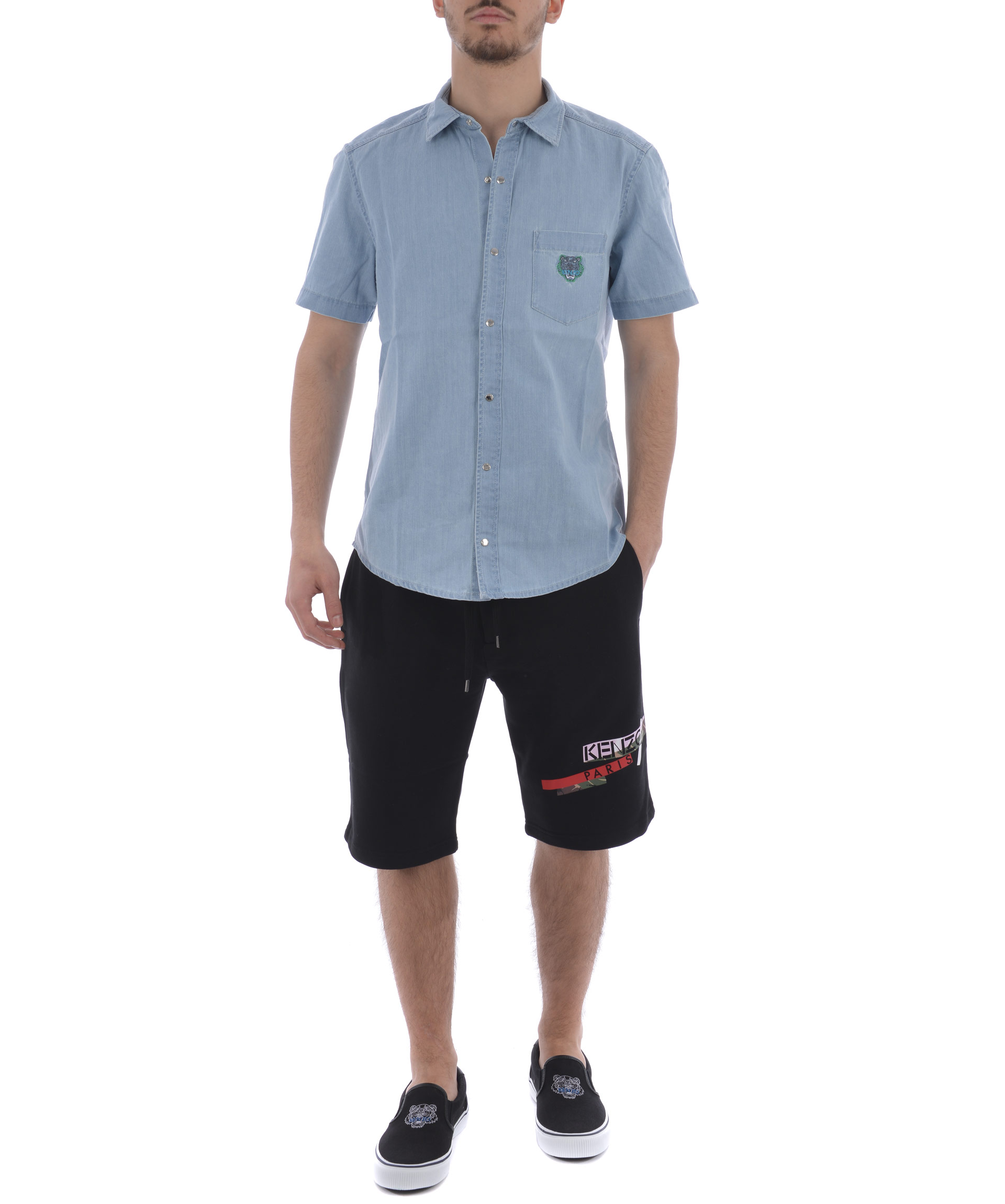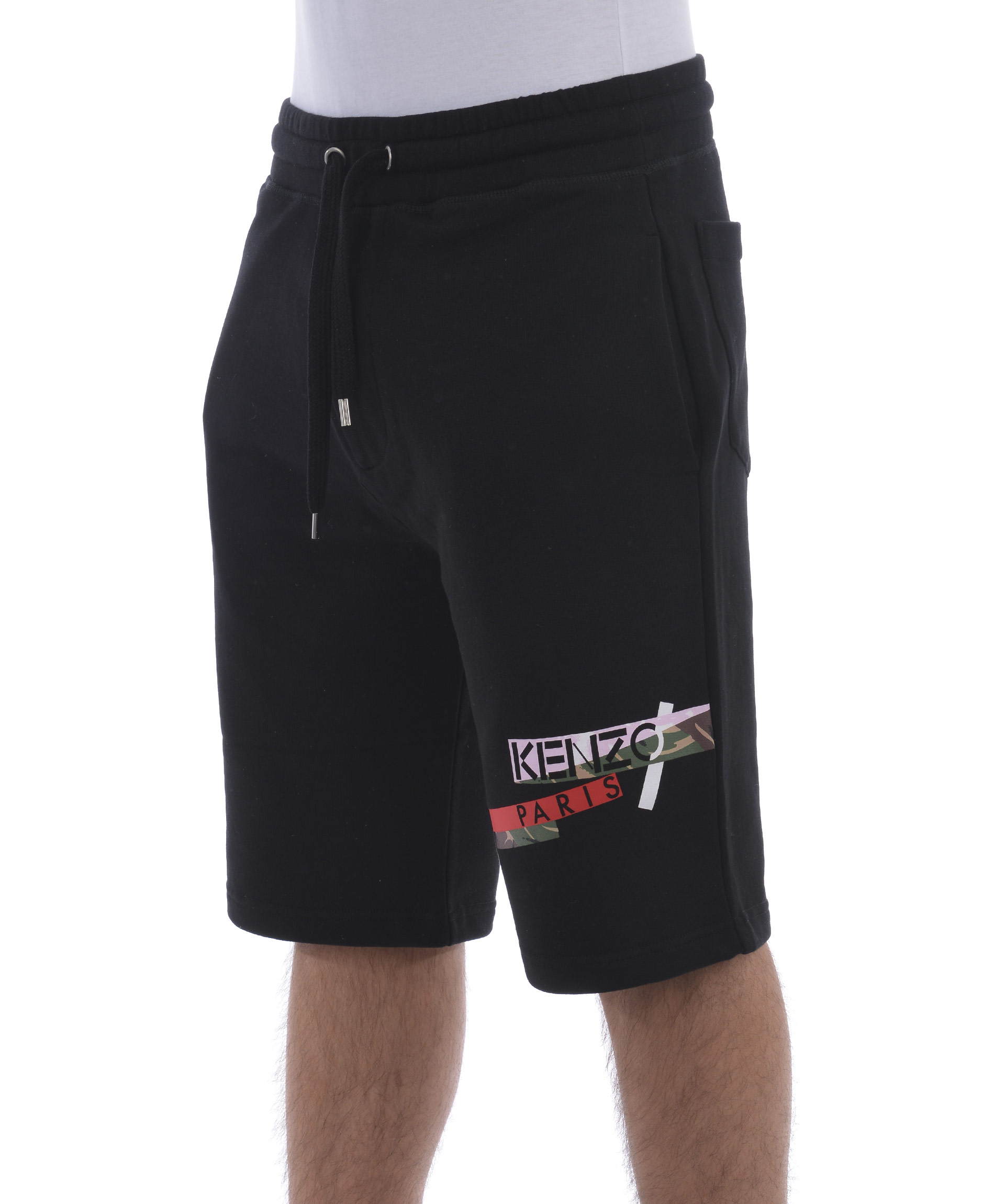 Shorts Kenzo in felpa di cotone Nero. Stampa logo frontale. Elastico in vita con coulisse. Tasche frontali a filo. Tasche a toppa sul retro. Misura in foto M 100% cotone