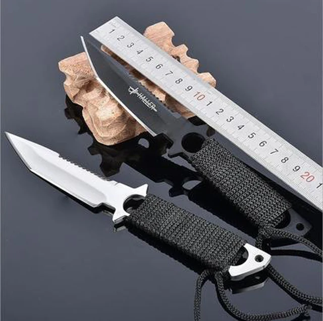 | [해외] Haller 레깅스 낙하산 칼 스테인레스 스틸 다이빙 스트레이트 나이프 야외 생존 캠핑 포켓 나이프 나일론 칼집 |