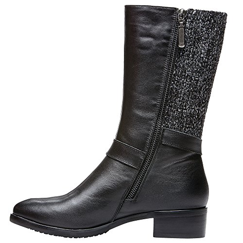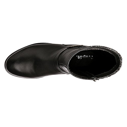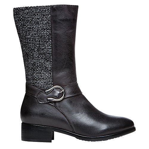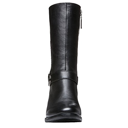 Product DescriptionFull grain soft leather upper on a stacked heel and inside zip for easy entry!0