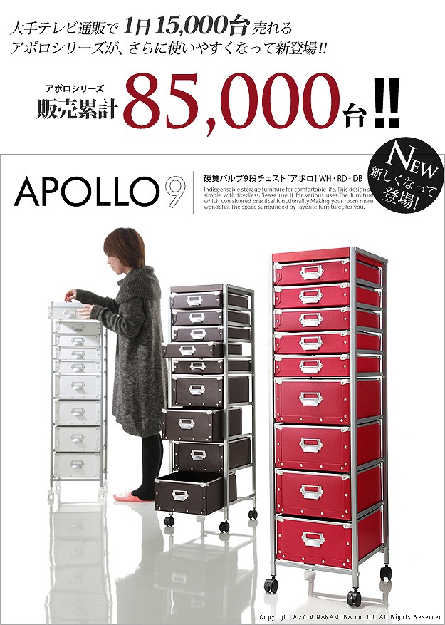 ●商品について:スリムでシンプルなパルプチェスト。上段浅引出し(高さ7cm)5杯、下段深引出し(高さ14cm)4杯の全9段。引出しは軽くて丈夫な硬質パルプ。トレイ型なので引き出しごと取り出してそのまま作業に入れます♪分類しやすく、デスク周りの書類整理(A4までOK)はもちろん趣味の小物収納にもピッタリ。下段の引き出しは深さがあるのでCDも収納できます☆フレームは頑丈なスチール製。本体は組み立て不要なので、キャスターを取り付けるだけですぐにご使用になれます。
