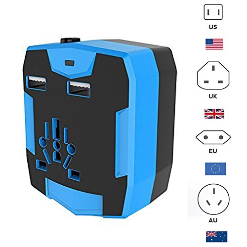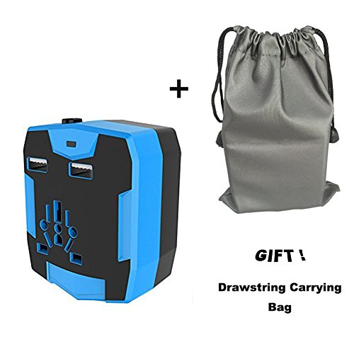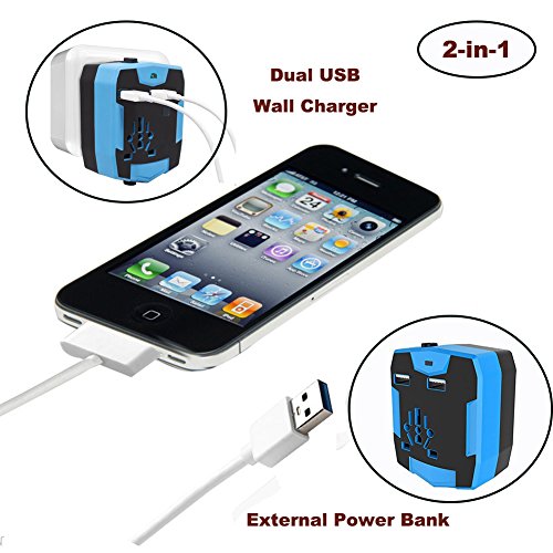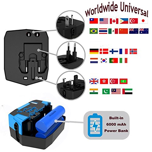 Travel Adapter with 6000mAh Power Bank,Dual USB and Universal AC Socket Worldwide US UK EU AU CN(Blue)