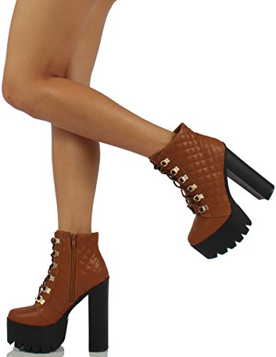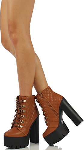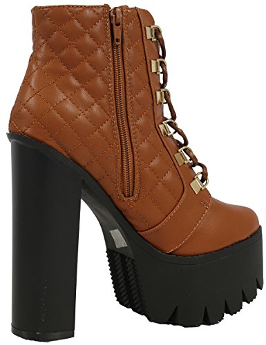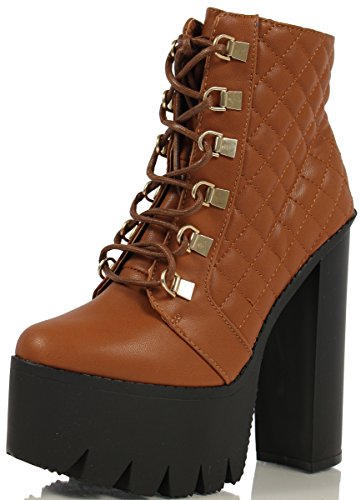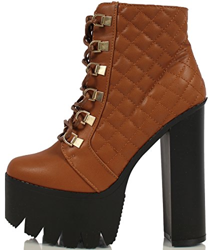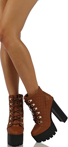Binding : Apparel Product Description Featuring Faux Leather quilted panel at rear, round toe front, lace up closure with D-rings, chunky platform and heel, inner side zip for easy on/off, smooth interior lining, and finished with lightly padded insole for comfort. Heel Approx 6' Platform approx 2 1/8' 0
