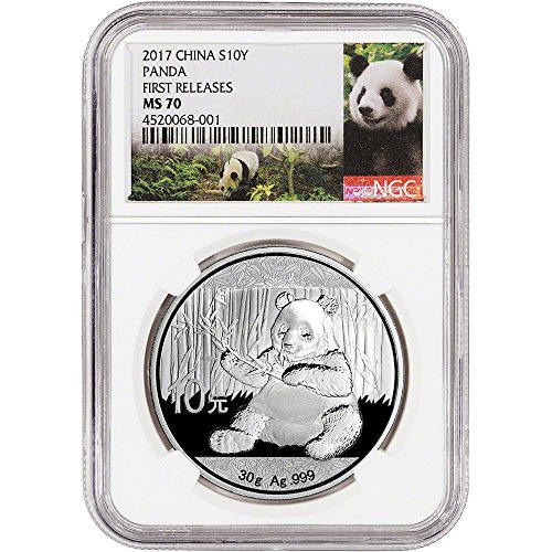 2017 CN China Silver Panda (30 g) First Releases Panda Label 10 Yuan MS70 NGC