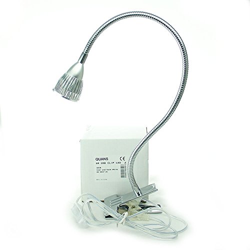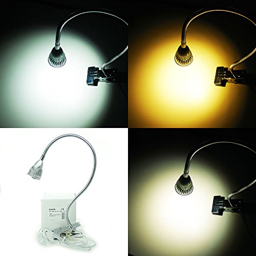 -. Title : QUANS 5W 3 Colors LED COB Clip on Light 19.68 INCH 50 CM Tube Desk Flexible Table Bed Lamp Work Home Design lighting Silver 110V 220V 85-265VAC with US Plug switch on off 500LM D44