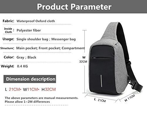 -. Feature : MULTIPLE STORAGE CHEST PACK:Consists of one main pocket, one zip pocket and two compartment pockets. The main pocket is very spacious to put your books,iPad,Snacks,water bottles and some large iterms; Front zipper bag can hold some small objects. For example keys, iphone, cards, tickets that It's more convenient to fetch things. The two compartment pockets can hold your wallet, file and anything valuable. / WATERPROOF:Fabric has a strong water repellent function to protect your belongings. / HIGH QUALITY: Product is fashionable and beautiful with exquisite workmanship and personalized apparel. Also very Durable. / OUTDOOR PARTNERS: This sling Bag is Perfect as sports pack, travel pack to carry on lage or street style daypack. / DIMENTION: 21cmL* 11cmW* 32cmH; 8.27inchL* 4.33inchW* 12.6inchH; Weight:0.4kg