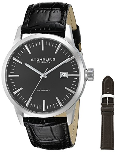 -. Binding : Watch -. Brand : Stuhrling Original -. Color : Grey -. Department : mens -. EAN : 0847988027410 -. Feature : Round stainless steel watch with logo on dial and interchangeable black croco-embossed leather or brown matte leather bands / Swiss quartz movement with analog display / Protective Krysterna crystal dial window / Features buckle closure, date window, and logo on crown and case back / Water resistant to 165 feet (50 M): suitable for swimming and showering -. IsAdultProduct : 0 -. Label : Stuhrling Original -. Manufacturer : Stuhrling Original -. Model : 555A.02 -. MPN : 555A.02 -. PackageQuantity : 1 -. PartNumber : 555A.02 -. ProductGroup : Watch -. ProductTypeName : WATCH -. Publisher : Stuhrling Original -. ReleaseDate : 2013-05-29 -. Studio : Stuhrling Original -. Title : Stuhrling Original Men's 555A.02 Classic Ascot II Swiss Quartz Date Grey Dial Strap Set Watch -. UPC : 696745989917