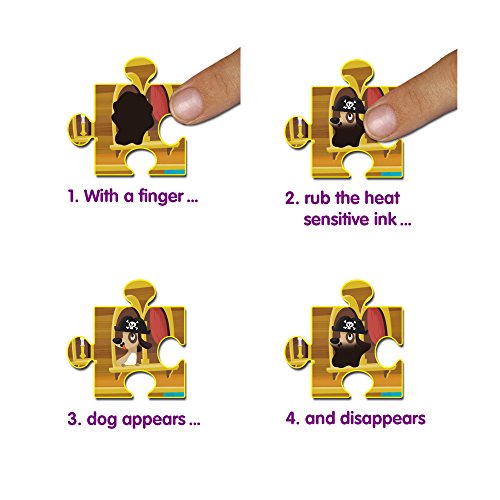 50-piece puzzle features 15 magic patches that reveal hidden pictures when your child rubs the heat sensitive ink