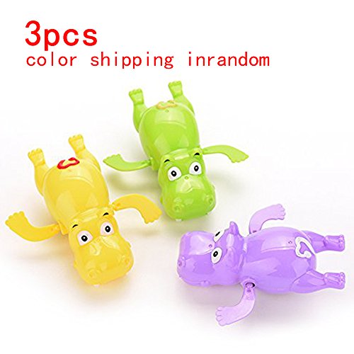 -. Feature : Practical wind up Hippo design with two limbs,is easy to use and environmental and energy-saving which is no need batteries.when you screw the clockwork, and then put it in the water, it can swim in the water.This is a really cute product and made your toddler laugh and giggle every time they're playing this product. / Color fidelity of the animal model of giving them a cognitive ability, enhance their color recognition.It's also a cool decoration in your baby's room. / Our bath and swimming series toys approved all of U.S. and European regulatory standards for child & Baby safety.CE&FDA approved.More safe and reliable for the kid&baby . / Materials:High quality made of Materials with Eco-Friendly Plastics(Non-toxic);Shaped:Hippo;Size:4.53*4.33* 1.97inch;Color:Yellow,Purple,Green(shipping in random).Package included: 1 x Swimming Turtle Toys.(No batteries required, can be used over and over again.) / Free Money back Guarantee: 60 days .Shipped by quick USPS when order P.R.Ice is higher than $6.99, 7-15 business days for delivery with free Tracking number.